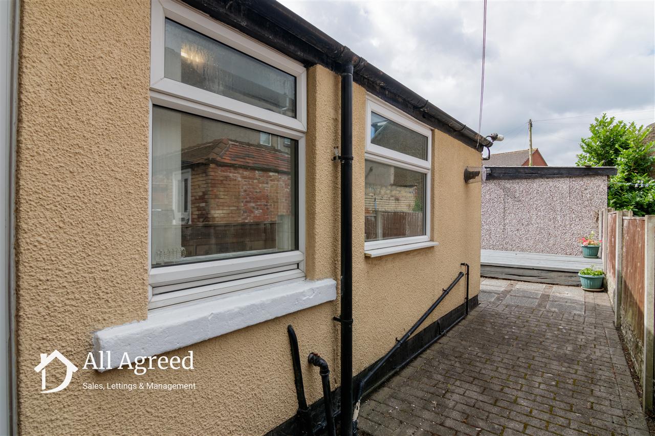 To the front there is a driveway providing off road parking. To the rear there is a low maintenance enclosed garden with two outhouses and workshop.