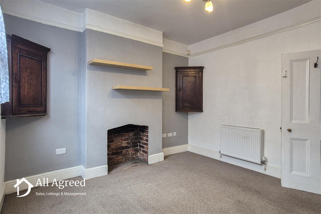 Original style fireplace (display purposes only), central heating radiator, built in storage cupboard and uPVC double glazed sash window overlooking the rear garden