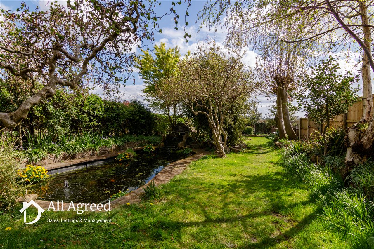 The property is set on a generous plot, offering off-road parking to the front and a beautifully established, tranquil garden to the rear. Backing onto open fields, the garden features a peaceful pond, mature trees, lush lawns, and a variety of shrubs and bushes, creating a perfect retreat.