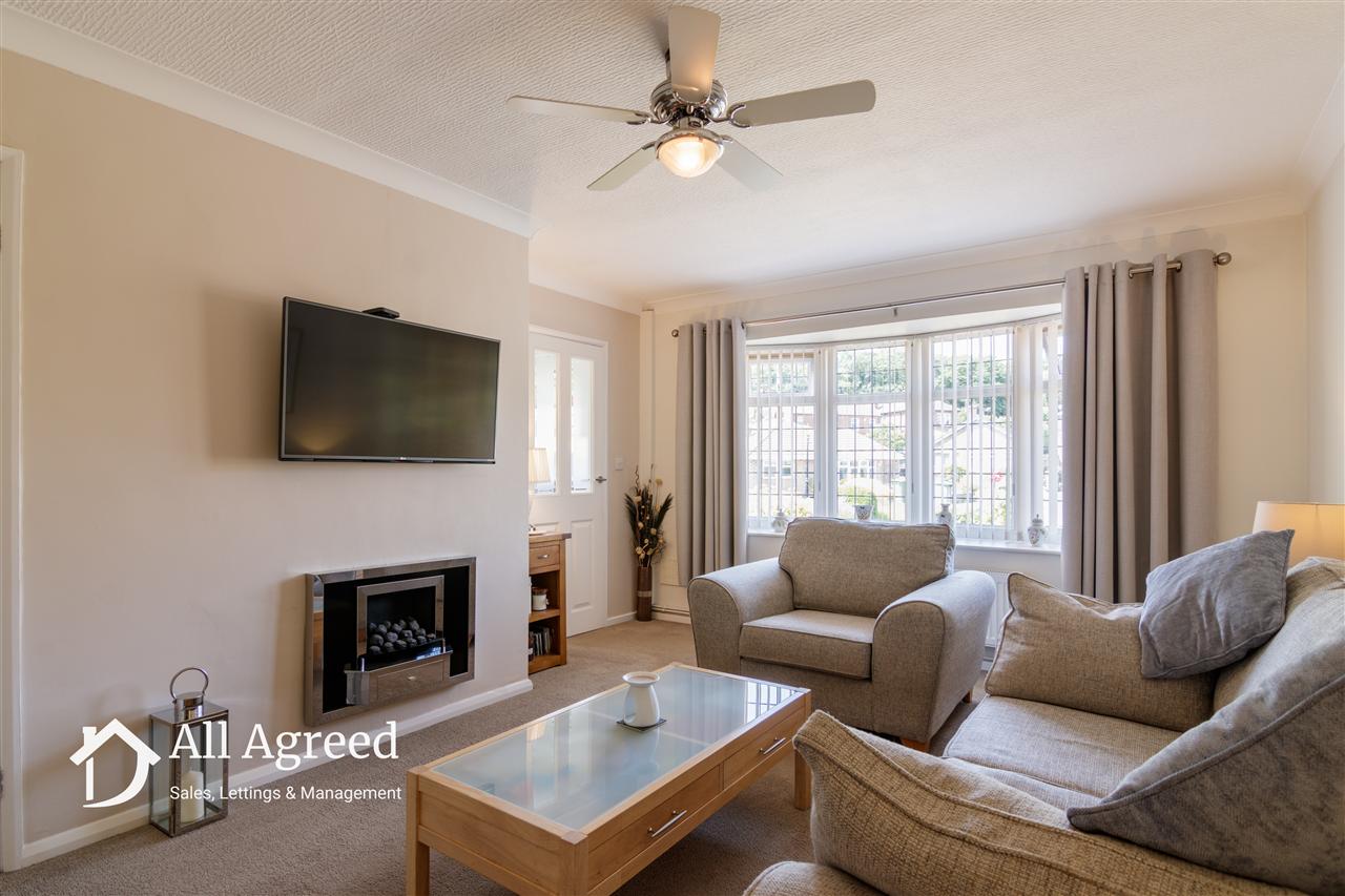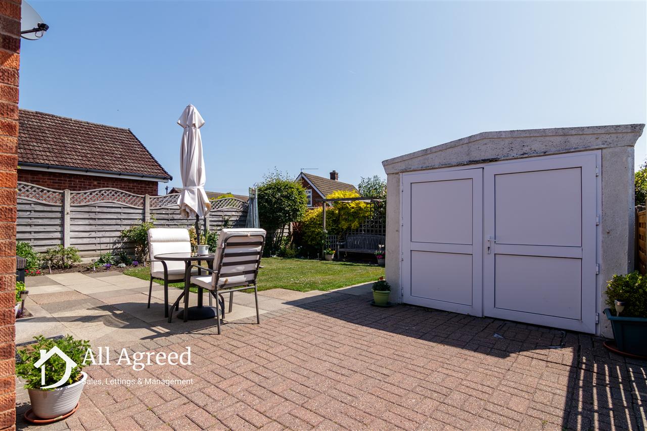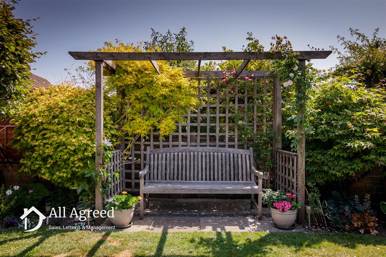 The front elevation features a lawn with established attractive planting borders. Driveway to the front and side provides off road parking and leads to the detached garage and rear garden. The rear garden offers a lovely mix of lawn and patio – perfect for outdoor dining or simply enjoying the sunshine.