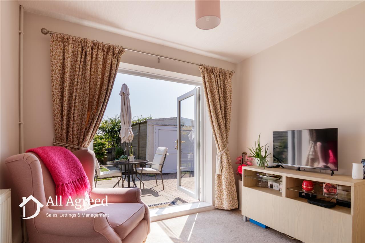 Central heating radiator and uPVC double glazed French doors opening to the rear garden.