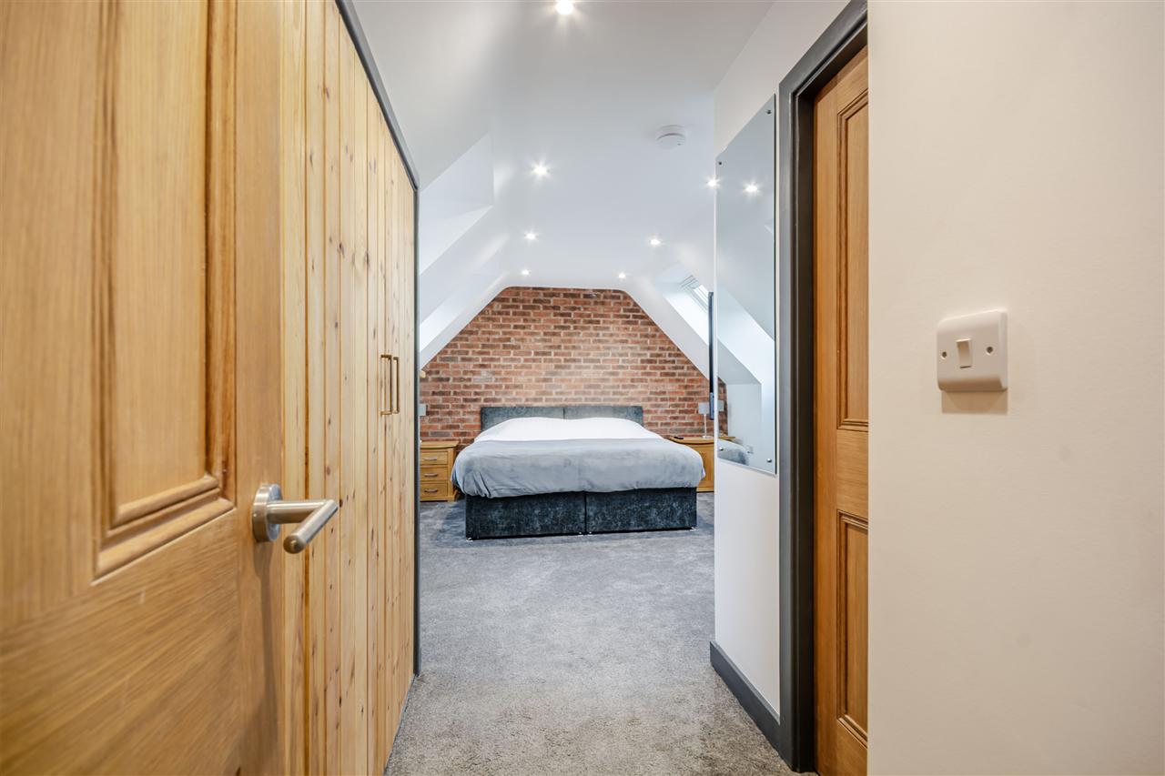 A further double bedroom with UPVC double glazed window, vaulted ceiling, carpeted flooring, ceiling spotlights, radiator and power points. The room benefits from its own en-suite shower room and fitted wardrobes.