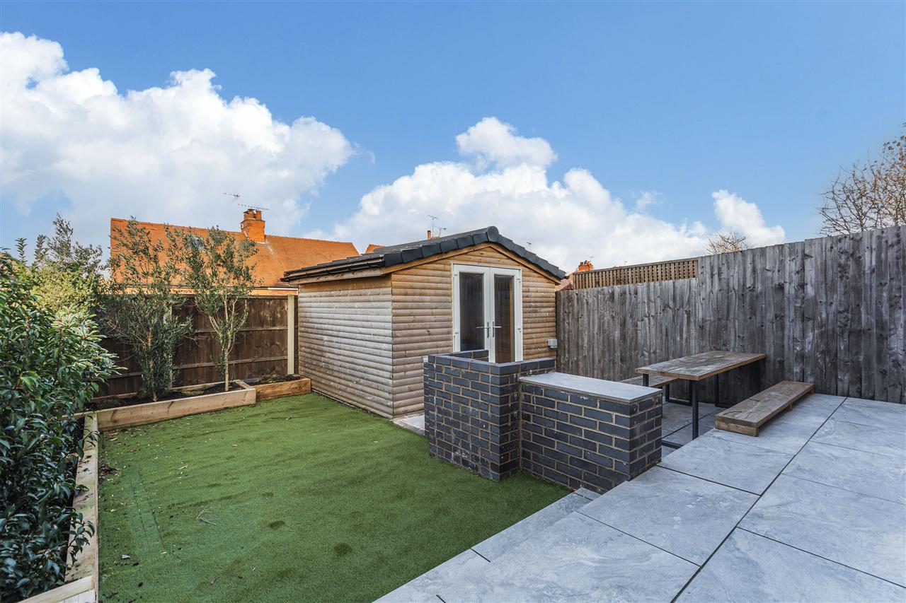 To the rear is a professionally landscaped, low-maintenance garden, incorporating a paved seating area, artificial lawn and enclosed boundaries for privacy. There is a detached timber outbuilding and covered entertaining area to the side, complete with power and lighting.