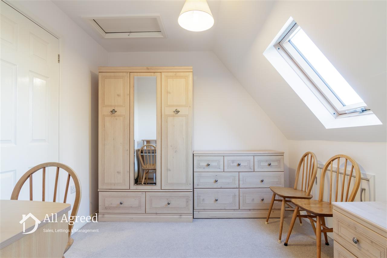 Central heating radiator, loft access and Velux window to the rear elevation.
