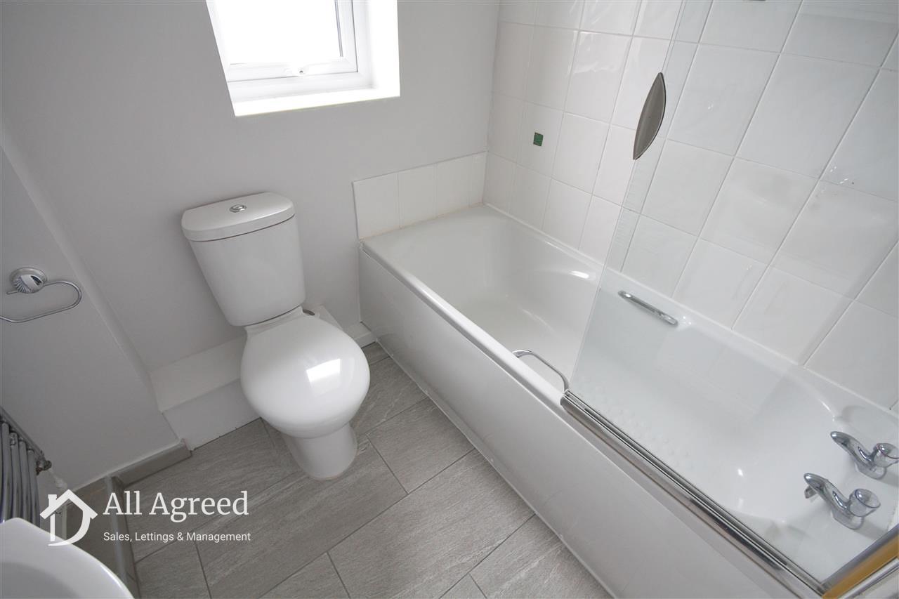Having a white suite comprising panelled bath with electric shower over and glass screen, vanity wash basin and low flush WC, chrome effect heated towel rail and opaque uPVC double glazed window to the rear elevation.