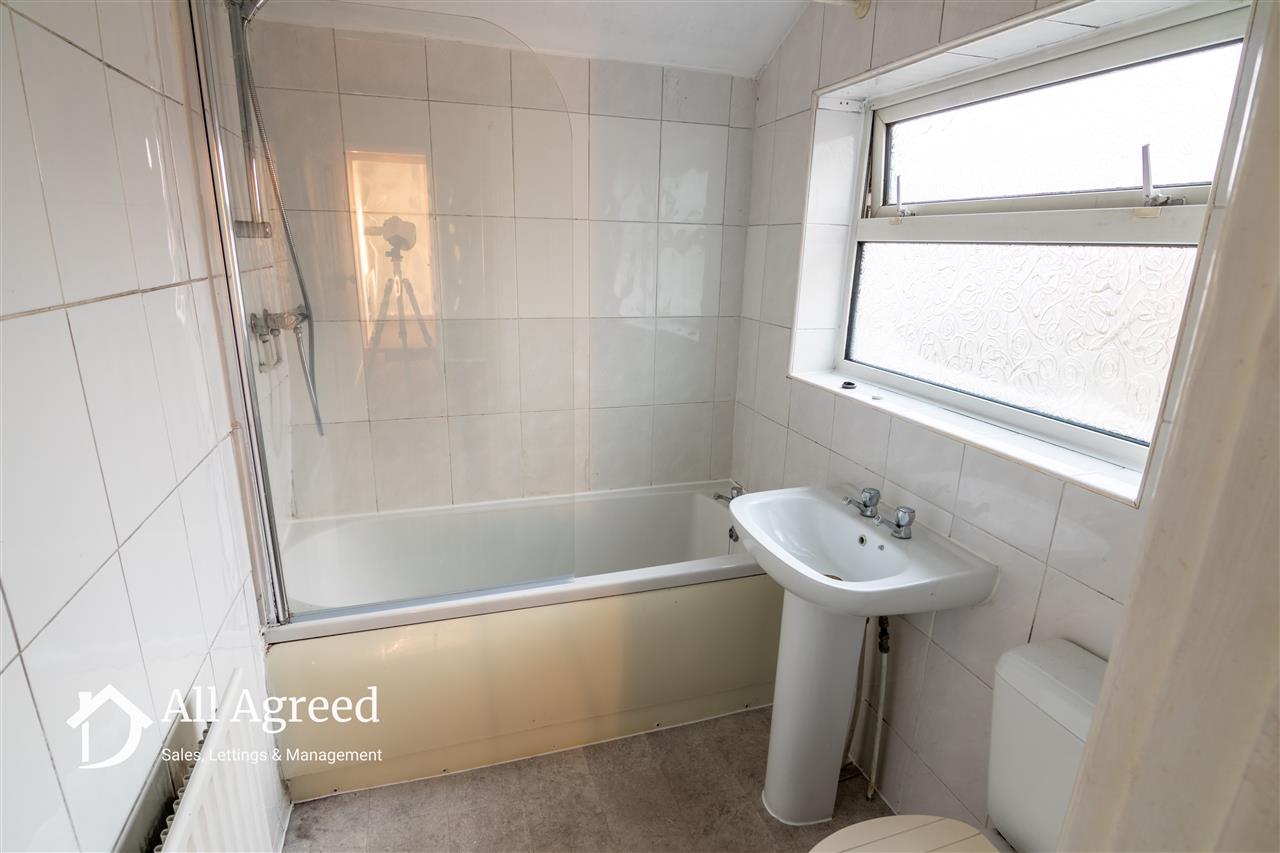 Having a white three piece suite comprising panelled bath with mains shower over, pedestal wash basin and low flush WC, lino floor covering, central heating radiator and uPVC opaque double glazed window to the side elevation.