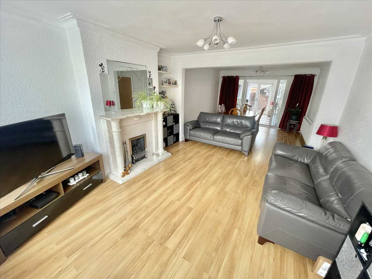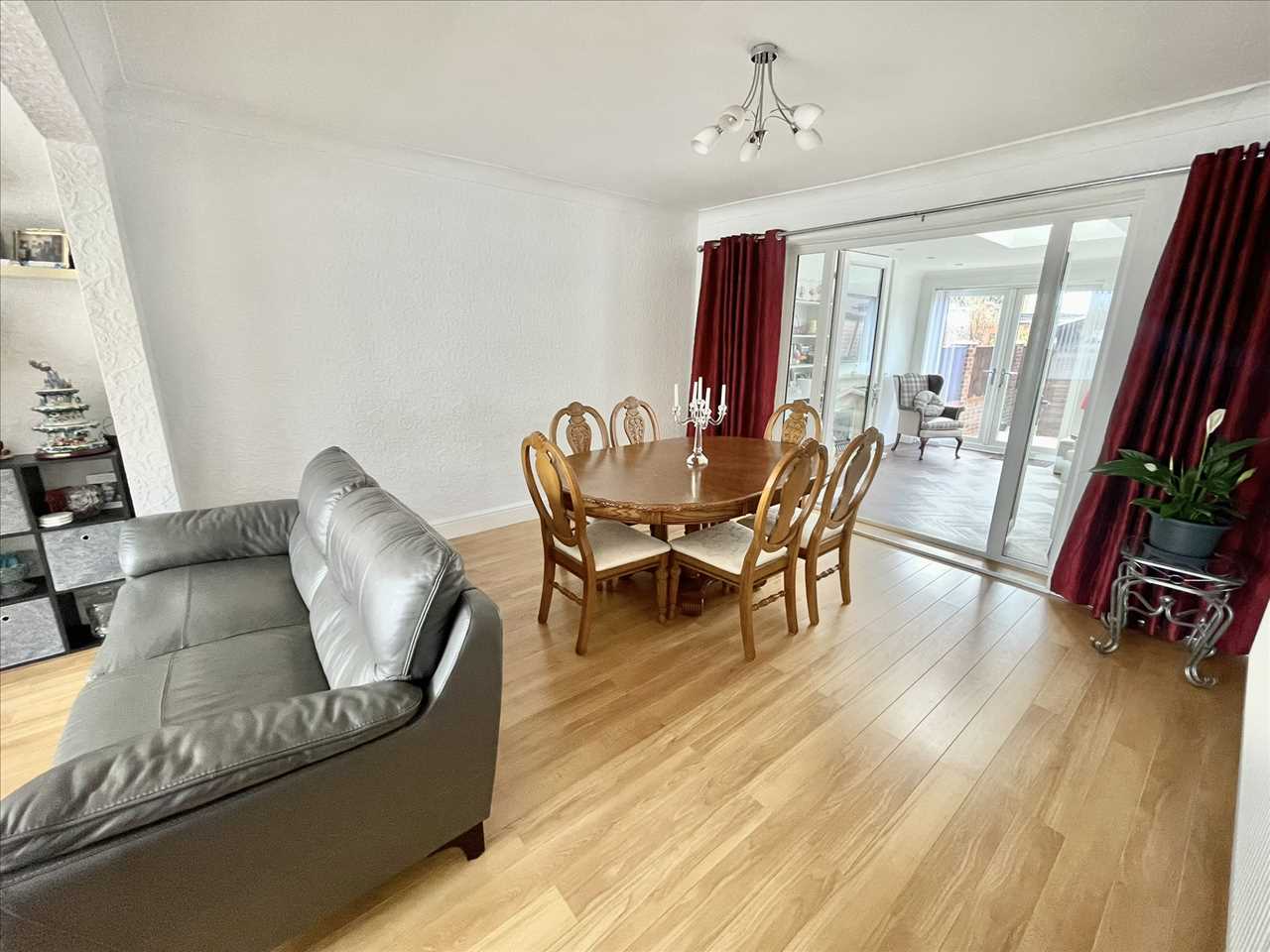 Open plan to the lounge, laminate flooring, radiator, upvc double glazed patio doors opening into the family room.