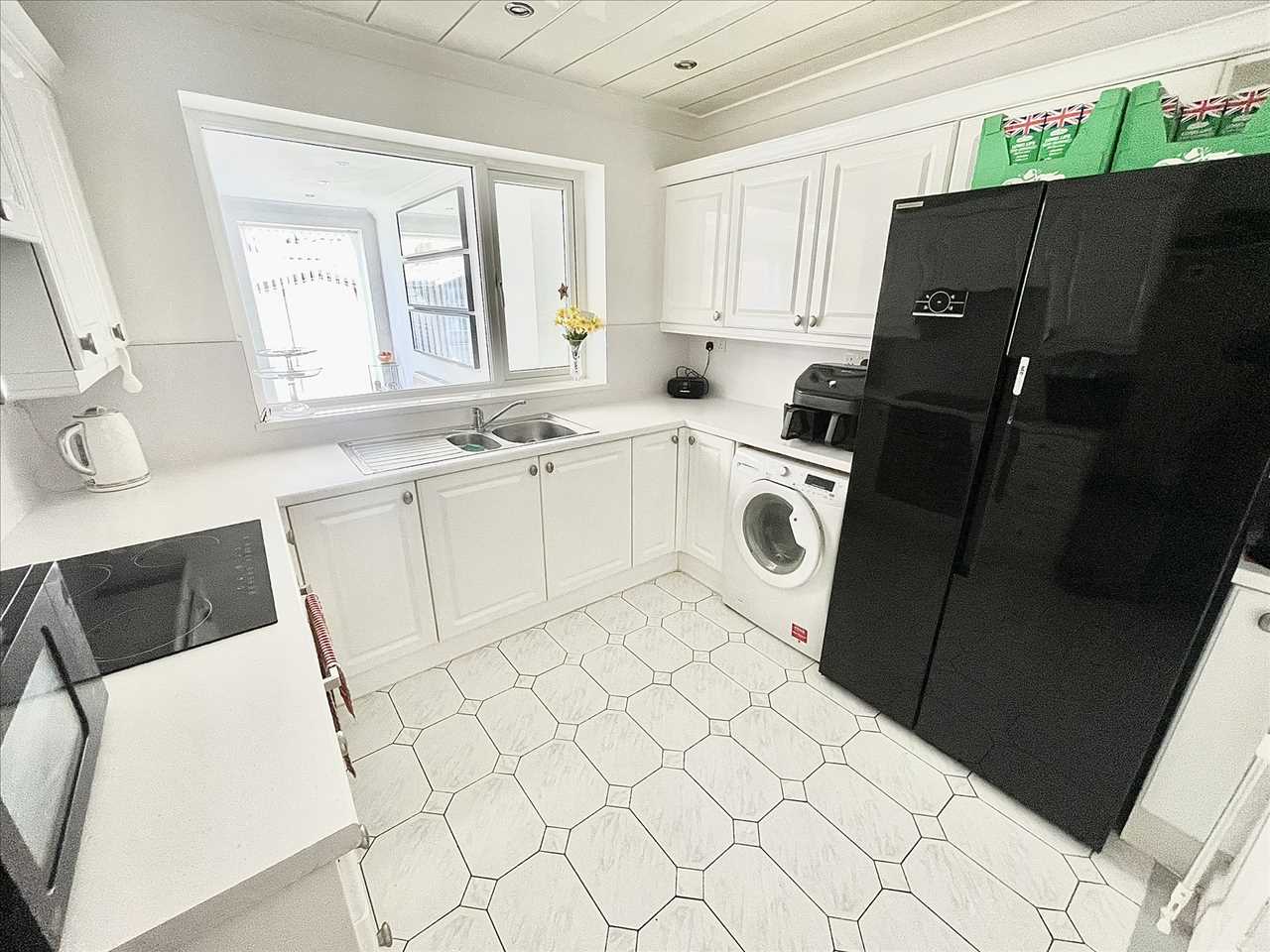 A range of fitted wall/floor units, single drainer one and a half bowl stainless steel sink unit with mixer tap, built in oven/ceramic hob/concealed overhead extractor hood, plumbing for washer, ceramic tiled floor, pvc lined ceiling with LED lighting, upvc double glazed window, walk in understairs cupboard, tall radiator, cottage style oak door.