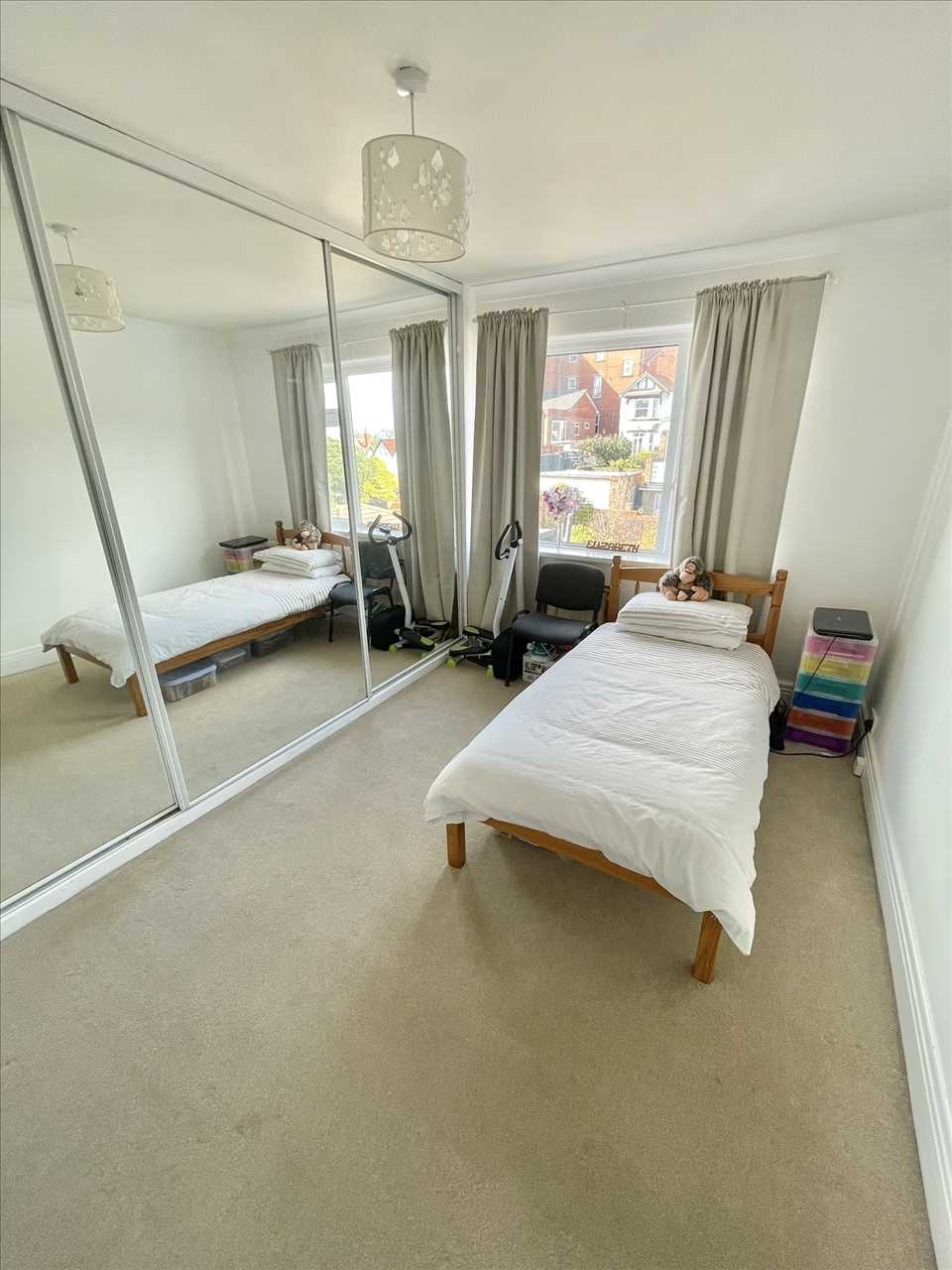 Built in wardrobe with sliding mirror doors, fitted carpet, radiator, upvc double glazed window, loft hatch with pull down ladder providing access to the useful boarded loft storage space.