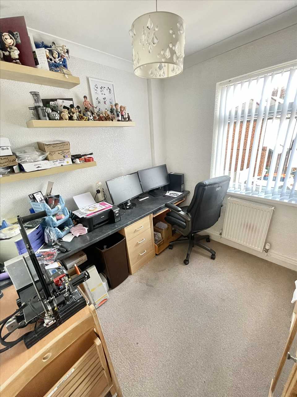 Radiator, fitted carpet, upvc double glazed window, vertical blinds.