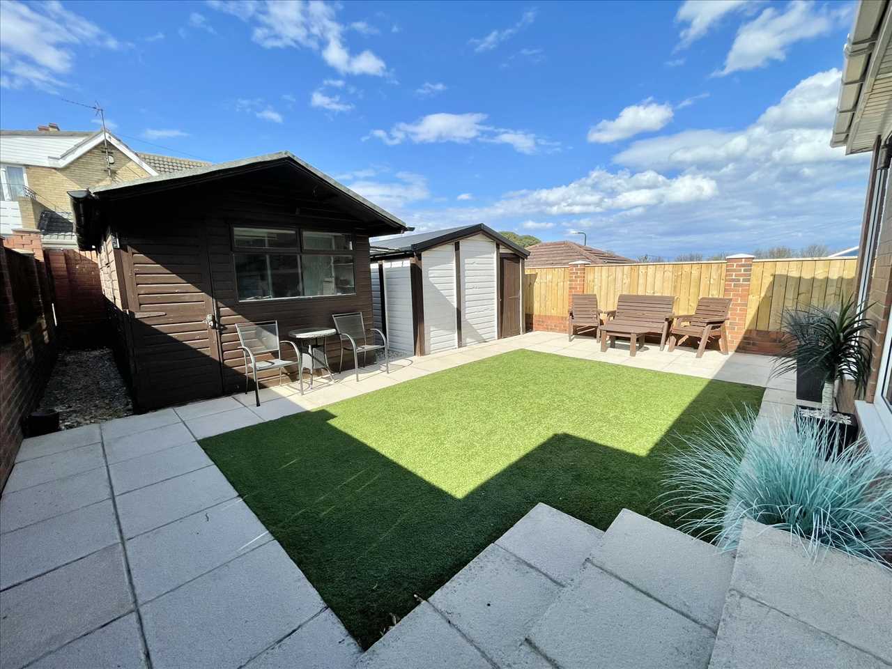 The garden itself includes an artificial lawn, paving/patio areas, exterior lighting, an outside tap and enjoys an aspect towards the coastline.