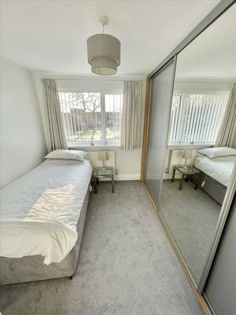 Fitted wardrobes with sliding mirror door, radiator, fitted carpet, vertical blinds, upvc double glazed window.