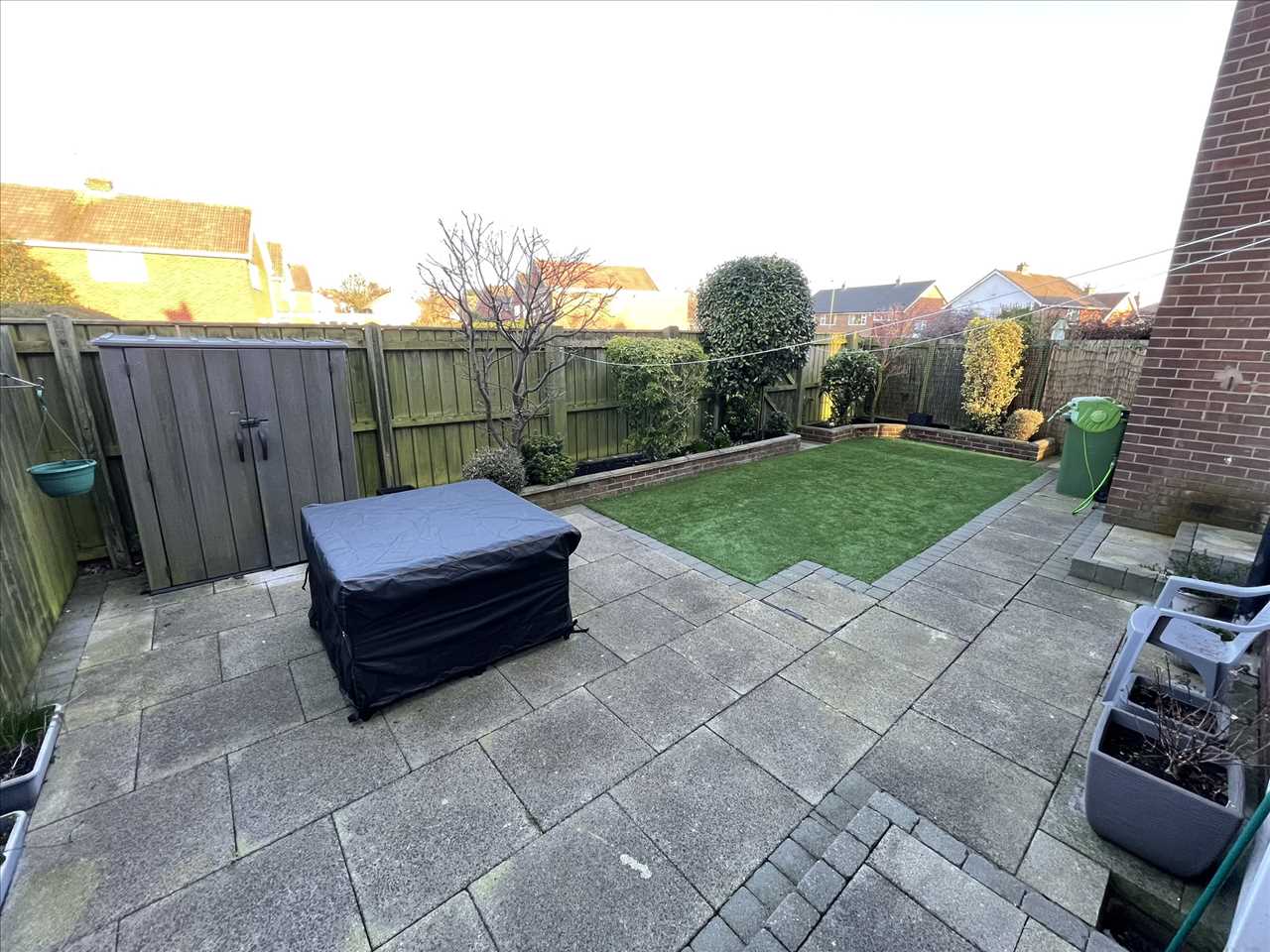 There is block paved car standage space at the front garden suitable for two vehicles. A side path provides access to a useful exterior store cupboard as well as to the rear garden which includes paved patio areas, a lawn, exterior tap and exterior lighting. A gate on the rear boundary allows access to a surprisingly private grassed area to the rear which the property overlooks.